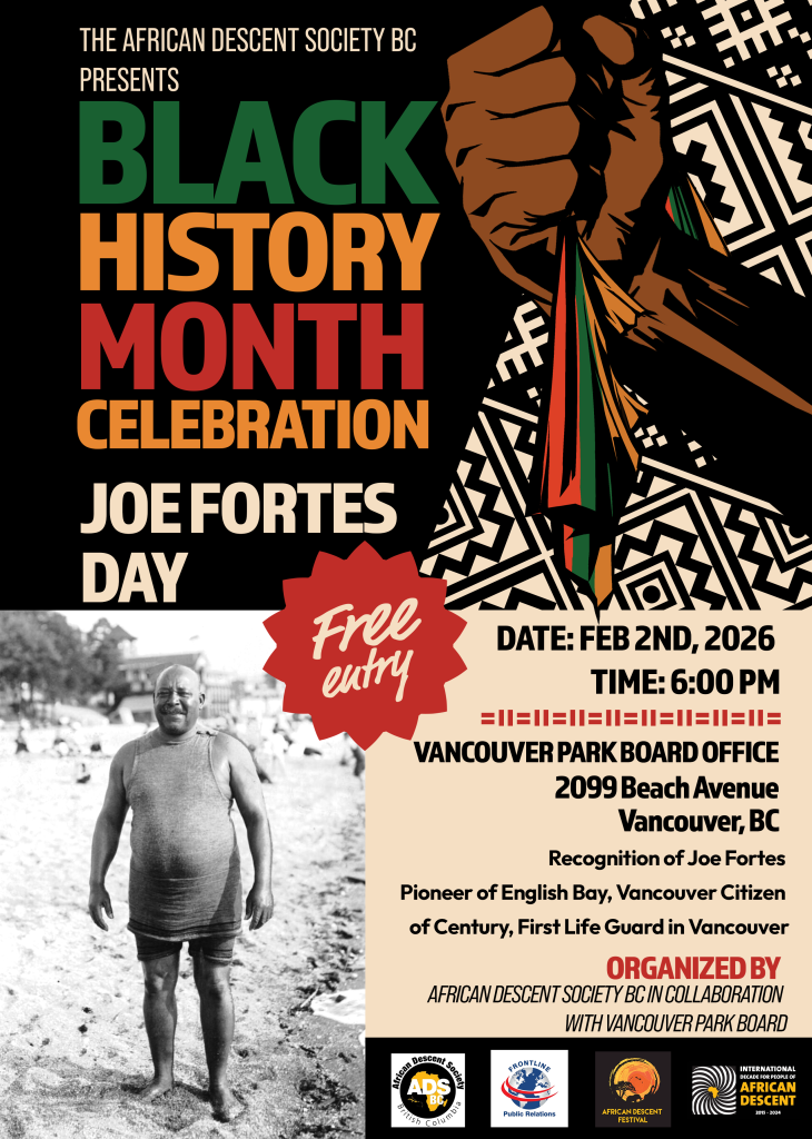 The African Descent Society BC recognizes that we are on the unceded territories of the xwməθkwəy̓ əm (Musqueam), sḵwxwú7mesh (Squamish) and səl̓ílwətaʔɬ (Tsleil-Waututh) Nations. As many Africans were also displaced from their homeland – and left to forge our own paths – we sympathize and stand in solidarity with our indigenous brothers and sisters. These cultures and traditions have shaped British Columbia and Canada since time immemorial and remain an integral part of our cultural mosaic.